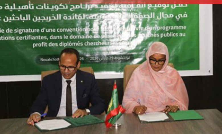 وقّعت سلطة تنظيم الصفقات العمومية، زوال اليوم الثلاثاء في نواكشوط، اتفاقية شراكة مع الوكالة الوطنية للتشغيل، لتنفيذ برنامج تكوين وتأهيل في مجال الصفقات العمومية لصالح الخريجين الباحثين عن عمل.