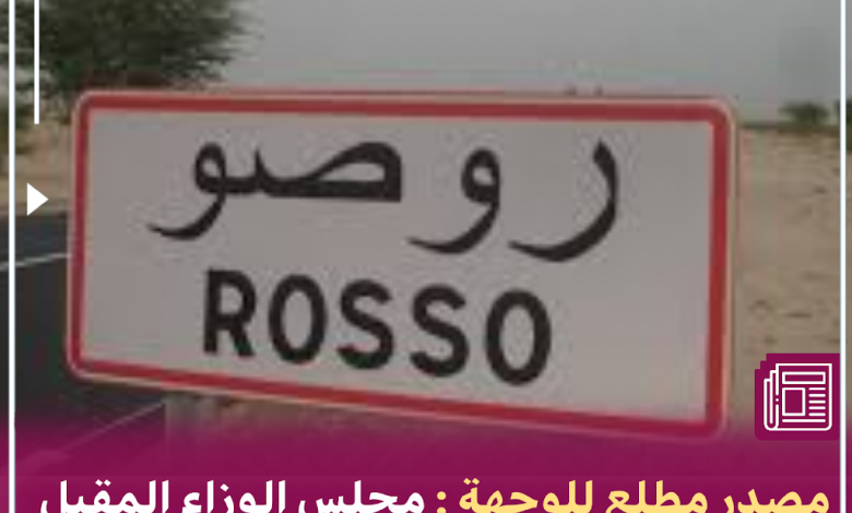علمت الوجهة من مصادرها الخاصة والمطلعة أنه من المقرر أن يلتئم مجلس الوزراء القادم يوم الأربعاء الموافق 1 فبراير 2023 بمدينة روصو عاصمة ولاية اترارزة، وسيكون مخصصا لآليات تطوير الزراعة الوطنية.