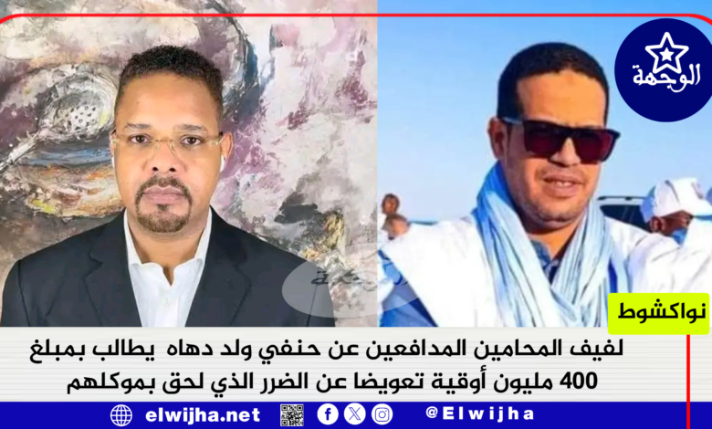 طالب لفيف المحامين المدافعين عن حنفي ولد دهاه بمبلغ 400 مليون أوقية تعويضا عن الضرر الذي لحق بموكلهم ،